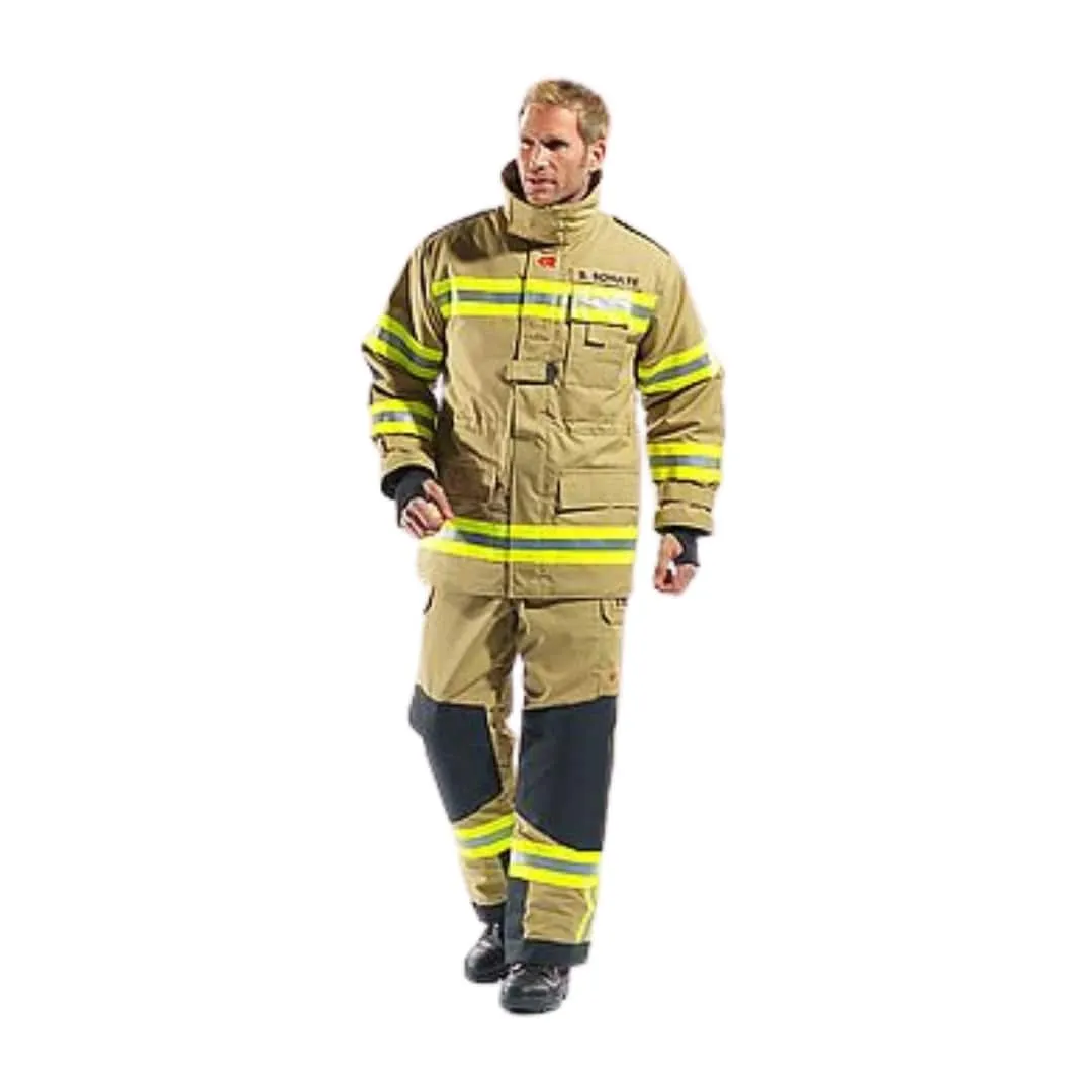 در شرایطی که عملیات ورود به آتش با خطرات شدید حرارتی، تماس با اجسام داغ و ریزش سازهها همراه است، استفاده از پوششهای محافظ استاندارد و مقاوم نقشی اساسی در ایمنی فردی آتشنشانان دارد و انتخاب تجهیزات با کیفیت، یکی از مهمترین الزامات فعالیت حرفهای در این حوزه تلقی میشود؛ لباس آتش نشانی بالی کلر به دلیل برخورداری از ساختاری سه لایه متشکل از پارچه GORE® PARALLON، لایه جاذب رطوبت و آستری داخلی لطیف، سطح بالایی از حفاظت و راحتی را به طور همزمان فراهم میآورد. طراحی دقیق لباس آتش نشانی که شامل اورکت و شلوار جداگانه با وزن تقریبی ۳۵۰۰ گرم بوده، امکان مانور و تحرک آزاد در محیطهای پرخطر را فراهم کرده و وجود پنلهای شبرنگ مقاوم به حرارت برند 3M در نقاط کلیدی آن، باعث افزایش دید در شرایط کمنور یا شب هنگام شده است. قسمت اورکت دارای جیبهای متعدد، آستینهای آزاد، یقه محافظ و برش ارگونومیک بوده و شلوار نیز علاوه بر برخورداری از همان ساختار سه لایه، دارای بندهای نگهدارنده شانهای است تا فشار از ناحیه کمر حذف شود و راحتی در استفاده طولانی مدت حفظ گردد؛ رنگ خاکی، سایزبندی متنوع و ساختار مقاوم در برابر نفوذ رطوبت از دیگر ویژگیهاییست که این لباس را به انتخابی مطمئن برای فعالیت در محیطهای عملیاتی و زیر بار مستقیم شعله تبدیل کرده است.