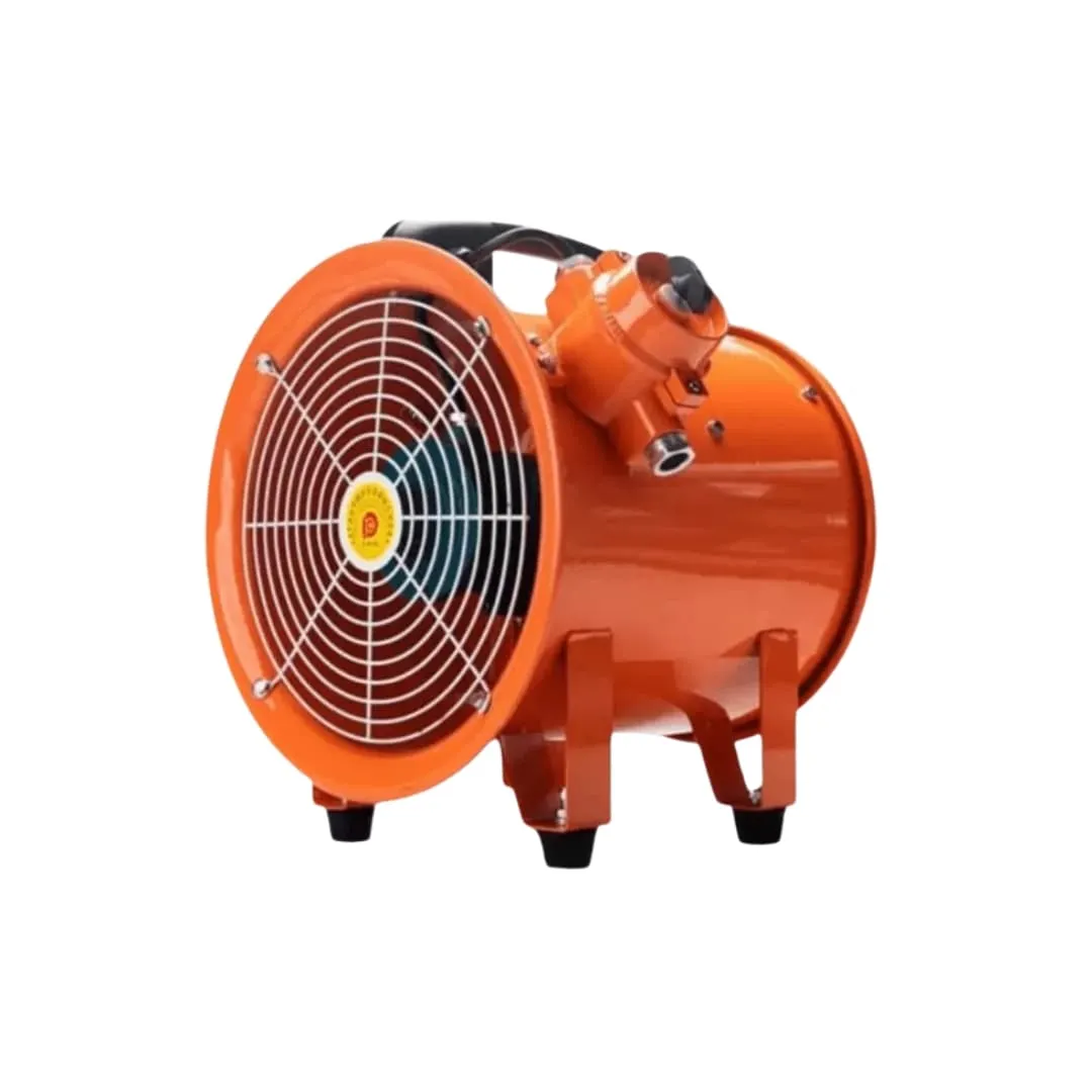 فن تخلیه دود ضد انفجار مجهز به موتور بنزینی و کلیدهای ضد شعله است که در محیطهای پرخطر کاربرد دارد.